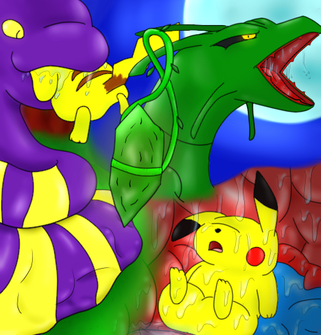 どこかにある辺境の森。 とりわけ珍しい特徴があるわけでもなく、この辺一体の樹木はみな大きくもないが、 森自体の大きさは決して狭いわけでもない。 そんな感じの……それこそどこにでもあるようなごく普通の森だ。 季節は春を迎えて、森の中では陽気が漂い…… 色取り取りの春に実をつける木の実が、まだ熟し切れていないものも含めて木々の枝を重くしならせている。 それら木の実に多くの生き物たちが群がっていた。 皆が思い思いに好きな木の実を囓り、溢れる果汁がこぼれ落ちている。 だからみんな気が付かない。 甘い木の実の香りに紛れて、漂う危険な香りに…… ”ガサガサ” 今一匹の生き物が夢中で木の実を食べている。 そんな彼に向かって忍び寄るのは、腹を空かせた肉食の生き物が一匹…… 木の実に夢中な獲物に彼等は忍び寄り、襲い掛かる。 「……………っっ!!!」 森の中で、悲痛な悲鳴が木霊した。 ※ ※ ※ 「ピカ?」 その悲鳴を聞き一匹の小さな生き物が足を止める。 特徴的な鳴き声と、尻尾……『ピカチュウ』と呼ばれる電気ネズミ。 愛くるしい外見とは裏腹に意外と危険なポケモンとしても知られている生き物で、 丸く真っ赤なホッペに電気を蓄え、それを狙った獲物や敵に向けて放ち、相手を感電させる力を持っている。 この森の中では特にピカチュウ達が多く生息しており、彼はその中の一匹だ。 そして、先ほど響いた悲鳴も同じ…… 「……チュウ」 ピカチュウは暫く棒立ちで、仲間の悲鳴が聞こえていた方を見つめていたが、 生憎と何時までも気にしている暇はない。 一度前を向くと、彼が再び後ろを向くことはなかった。 今はかくれんぼの最中で、仲間内で良くやる遊びの一つなのだが。 遊びとはいえ、当人達は真剣そのもの……というのも、これは捕食者達から身を隠す訓練も兼ねていて、 当然負けたら罰ゲームがある。 それは何かのお手伝いだったり、勇気試しだったり、なけなしの木の実を渡すことになったり。 だから隠れる方も見つける方も必死だ。 それに素早く身を隠すのに最適な場所を探し出すのは、意外と骨が折れるものだ。 本当なら立ち止まっている暇もない筈なのだけど、 悲鳴に気を取られて足が止まったピカチュウは他の皆より少し行動が遅れてしまった。 もうすぐ鬼が動き出す時間だ……それまでに身を隠しておきたい。 そう考え走るピカチュウの首には何かが揺れている。 ……緑に光る石。石英だろうか? それに草の蔓を巻き付けて、即席のペンダントにして身に付けていた。 日の光を受け、キラリと光る石は……意外なほど彼にお似合いのアクセサリーだ。 『緑の石は幸運を呼ぶ』そんな噂を何処かで聞いたことのあった彼は、このペンダントをいたく気に入っていた。 実際にどうだったのかといえば…… かくれんぼは連戦連敗と散々な結果だったりする。 それでも彼は今もペンダントを手放そうとはしなかった。 効果はなくても験担ぎ(げんかつぎ)として、この綺麗な石は彼の宝物だったから…… ”ガサガサ” 「ピカァ?」 鬼が動き出す時間ギリギリに運良く見つけた手頃の茂み。 ピカチュウは『先客は居ないよね?』と声をかけると茂みの中に入り込む。 少し葉がチクチクして居心地は決して良くはなかったけど、尻尾の先までスッポリと隠れられた。 今回はここを隠れ場所として、彼は身を潜める。 ※ ※ ※ ……あれから三十分が過ぎ去った。 その間に鬼が彼の隠れている茂みのすぐ前を通り過ぎること……実に四回。 運良く……まだ、見つからずにすんでいた。 しかし、他の仲間達は着実に見つかっているようで、 見つかった仲間の声が、時折…彼の隠れている所にまで聞こえてくる。 「……チュウ」 そろそろ自分も見つかる頃かなと、ピカチュウは小さく溜息を洩らす。 罰ゲームは一番最初に見つかったものだから、今すぐ見つかっても特に問題はない。 そんな諦めにもにた気の緩み…… それを引き締めるかのように、すぐ近くの茂みが音を立てる。 ”ガササッ!” 見つかるかも知れないという緊張感が、ドキドキとピカチュウの鼓動を高鳴らせる。 やはり……勝負事は一番になりたかった。 鬼をやり過ごすため、ピカチュウは今まで以上に息を潜めていく…… しかし、茂みを揺らす音は大きくなり、明らかに彼の元を目指してきている。 見つかりたくはないが、どうにもやり過ごせそうにはなかった。 そして、ついにピカチュウは見つかってしまう。 ”バサァッ!” 「……ピッ?」 「シュー……ペロペロ」 鬼と向かい合ったピカチュウは硬直する。ピンッと立った尻尾が彼の驚きを如実に示していた。 茂みから顔を覗かせたのは彼の仲間などではない。 むしろ彼等の天敵……本物の鬼が茂みから顔を覗かせている。 「シャー!」 「ピ、ピカァ!」 激しい争いが始まったのか、ガサガサと激しく藪が揺れ始め、 両者の鳴き声が騒がしく森の中で響き渡り、ピカチュウの電撃が藪の中からあらぬ方向へと放たれる。 ついには